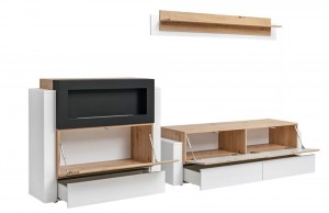 Мебельная стенка Queens создана для ценителей современного стиля и функциональности. Она станет уникальным решением для Вашего офиса или дома и придаст интерьеру неповторимый вид. Вместительные полки и выдвижные ящики позволят удобно разместить все необходимые вещи. Главным акцентом станет элегантный биокамин, который создаст тёплую и уютную атмосферу. Он полностью основан на биологическом топливе без запаха и безопасен для окружающей среды.