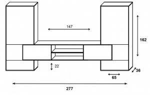 - 1 x Тумба RTV (выс/шир/гл - 30/210/46 см) тумба с левой и правой стороны есть фасады, которые открываются вниз, вниз, в центре находится открытое отделение с полкой стеклянной;