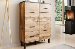 Комод в скандинавском стиле, LOTTA Дуб Вотан 2D4S 110 см, предлагает массу возможностей для компоновки, поэтому все зависит от ваших личных предпочтений. Разместить его можно в гостиной, столовой, детской комнате и даже холле. LOTTA 2D4S прекрасно дополнит интерьер комнаты, а также будет практичен в использовании. Выполненный с максимальной точностью, он понравится даже самым требовательным людям.