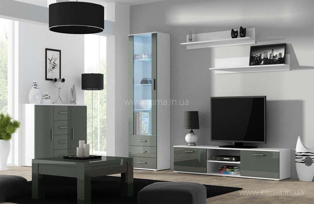 Фасад: МДФ ламинированный глянцевый, закаленное стеклоГостиная Soho 2 это пример компоновки элементов модульной системы Сохо, при заказе вы можете либо купить готовый набор, либо создать свой набор из различных элементов представленых в каталоге на нашем сайте