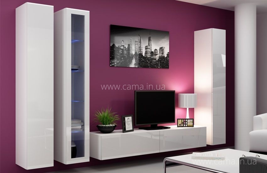 Мебельная стенка VIGO II выполнена в нескольких разных изысканных и оригинальных цветовых гаммах, таких как «белый/черный глянец», «белый/белый глянец», «черный/белый глянец» и «черный/черный глянец». Все эти цветовые гаммы отлично сочетаются с любыми другими цветами. Таким образом, вы можете создать свою собственную цветовую композицию в любой из ваших комнат.
