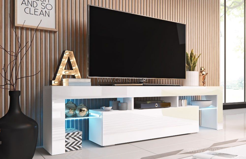 Версия ТВ тумбы Toro с средней шириной 158см (меньшая модель 138см, а большая 200см). В этой модели - так же как и в других можно докупить подсветку и выбрать любой из доступных вариантов сочетания цветов корпуса/фасадов.