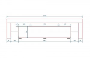 Cama TORO тумба для телевизора 158 см шириной, спереди открывается вниз, за дверкой находится ниша для техники, так же есть две стеклянные полки, с возможностью подключения подсветки.