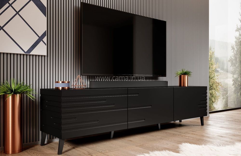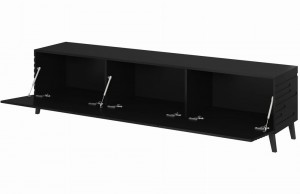 Черная тумба ТВ NOVA на ножках подойдет для гостиной или спальни. Высокая износостойкость снижает риск преждевременного повреждения или износа. Кроме того, очистка поверхности не является ни сложной, ни трудоемкой задачей. Фрезерованная плита МДФ не только эффектно выглядит, но и обладает выдающимися эксплуатационными свойствами. Тумба ТВ NOVA добавит стиля и класса, а высокие ножки облегчат уборку под мебелью.